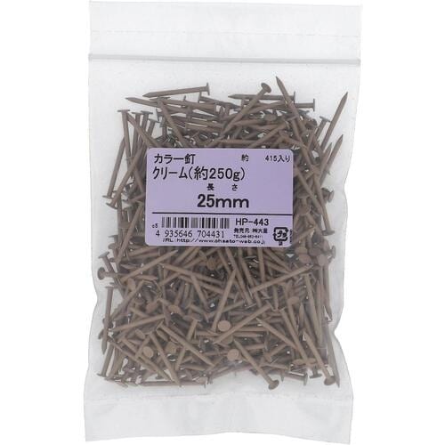 全長(mm):25 | その他仕様:着色釘 | 材質・仕上げ:鉄 | 単位:1袋(415本)