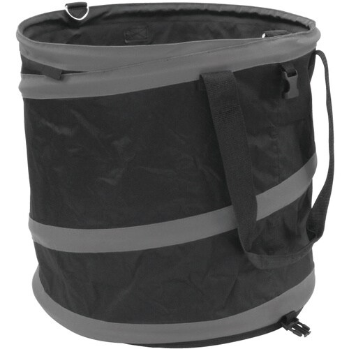スプリング式でパッと開いて、しっかり自立します。折りたたみ時は、バックルでカチッと固定できます。現場でのごみの収集に、資材や道具の運搬・収納に。