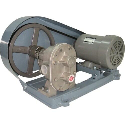 KA−1U型をモーター共通ベースに取り付けた型で、ベースはスライド式を採用しております。Vベルト駆動型です。腐食性化学液、食品関係、潤滑油などの移送に。