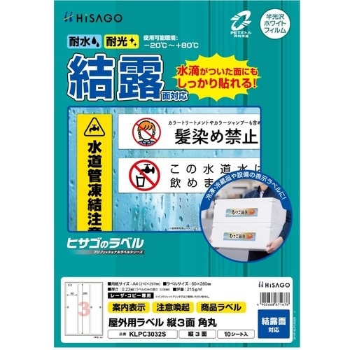 ヒサゴ HISAGO ラベル 屋外ラベル結露面対応 3面 KLPC3032S 1冊(10枚) A08H-3826