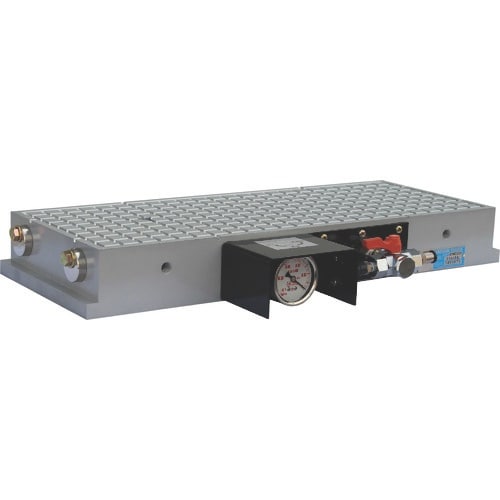 真空源内蔵のグリッドシールゴムタイプの真空チャックです。アルミ合金、銅合金、ステンレス、プラスチックなどの非磁性ワークを真空吸着して、研削作業するときに。 |