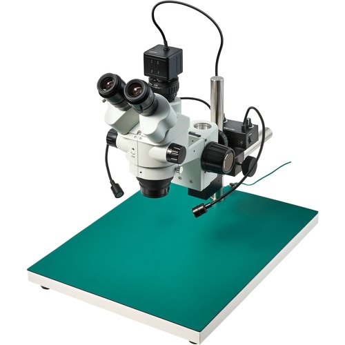 カメラが接続できるズーム式 & 新定番USBカメラ大きい観察対象に最適(スポット照明付)撮影と観察作業が同時に行える三眼実体顕微鏡と、価格と性能を両立した300万画素USBカメラのセットです。 |