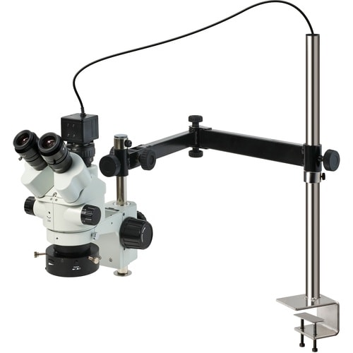 カメラが接続できるズーム式 & 新定番USBカメラ自由度の高いロングアーム(リング照明付)撮影と観察作業が同時に行える三眼実体顕微鏡と、価格と性能を両立した300万画素USBカメラのセットです。 |