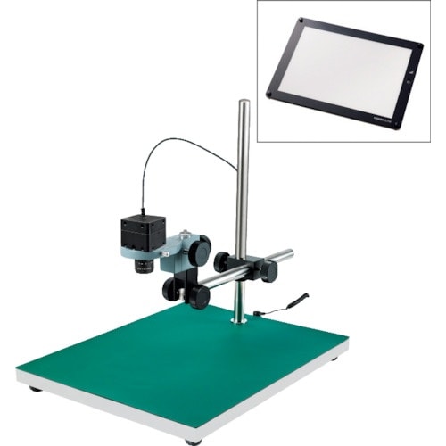 高性能USBカメラ×高画質な低倍率レンズです。高さもある大きい観察対象に最適(面発光照明付)です。堅牢で取付ネジを多数備えた500万画素USBカメラのセットです。 |
