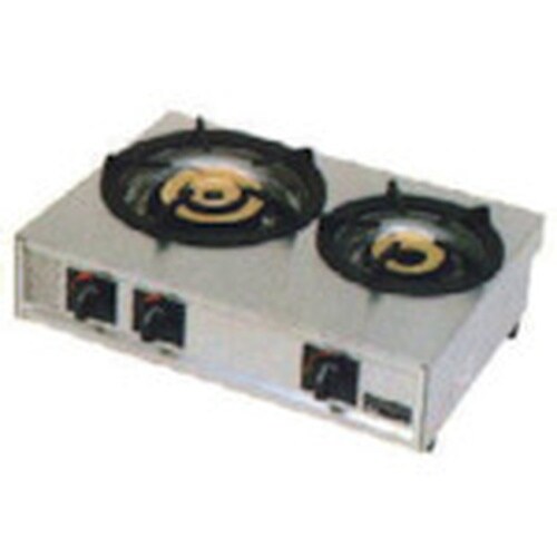 トップ前面とバックガードエッジ部分を曲線に加工したアール仕上げです。安全を工夫し、掃除もしやすくなりました。パイプ脚とアジャスターはステンレス(SUS304)製です。予備コンロに。 |