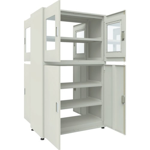 TRUSCO M3型ユニット中量棚 両面タイプ 上部アクリル 4枚扉 側板付 H2100XW1200 単体 M3WU7466GRA 1台