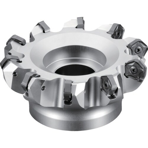5角形(10コーナ)チップの採用でコーナ当たりコストを低減します。ヘリカル切刃構造とダブルエッジ構造で低抵抗と耐欠損性を向上します。平面削り・面取り加工用。 |