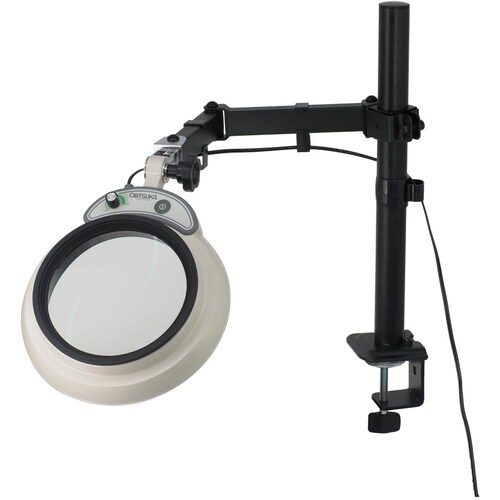 大径の円形レンズは広い視野を有して使い勝手を向上しています。レンズには作業者の疲労低減効果の有る「AR(反射防止)コート」を全倍率標準採用。高原にはLEDを採用し、光量調節機能も標準装備。 |