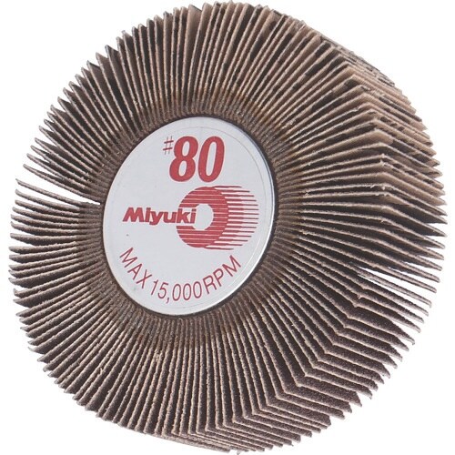 粒度(#):80 | 最高使用回転数(rpm):15000 | 外径X幅X軸径(mm):80X25X6 | その他仕様:軸付フラップホイールの斜め植え…