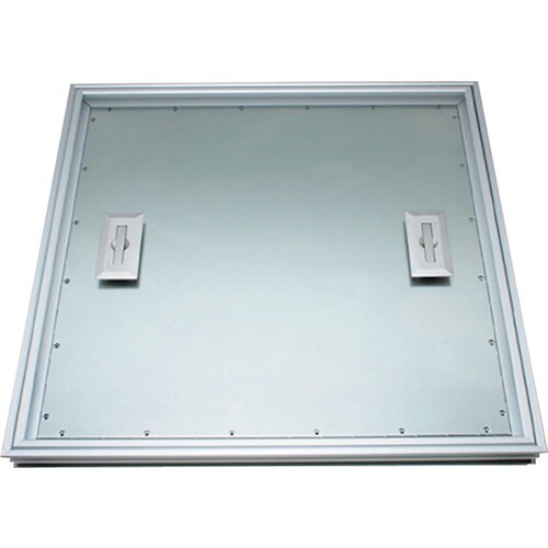 フローリング床材用の、アルミニウム+スチール製です。フローリング床材と蓋プレートの接着のりシロ2mmを確保しています。把手は落し込み把手です。屋内用(廊下・室内などに)。 |