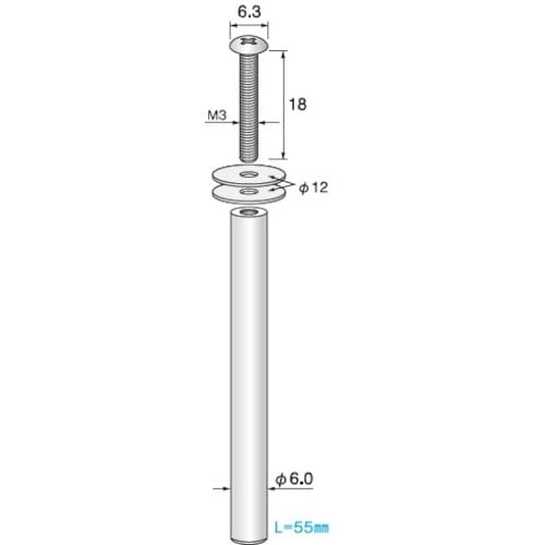 アルゴファイル ステンレスマンドレールM3タイプねじ頭 Φ6.3X18L Φ6.0軸 MR156L 1本