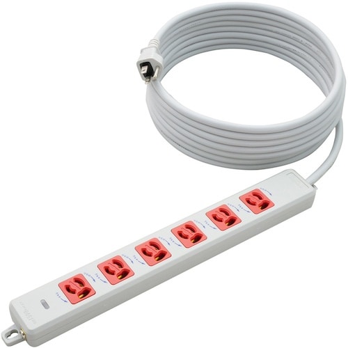 明工 横形OA用抜け止め接地タップ6コ口 ランプ、マグネット付 VCTF5m接地プラグ付(赤駒) MR7906TJ5WR 1個
