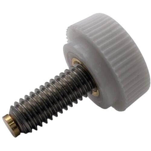 ナイロン製の化粧ネジ、先端に真鍮パッドを付けた製品です。締め込んだ際、相手物に真鍮パッドが当たり固定することができます。真鍮素材なので相手物を傷つけることなく強く保持できます。