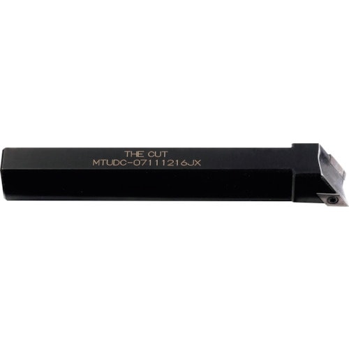 荒加工(MT−DE11・正転)と仕上げ加工(MT−DE07・逆転)を3本のホルダーで行える画期的な構造です。制約がある自動旋盤のL型のくし刃型刃物台を有効利用できます。 |