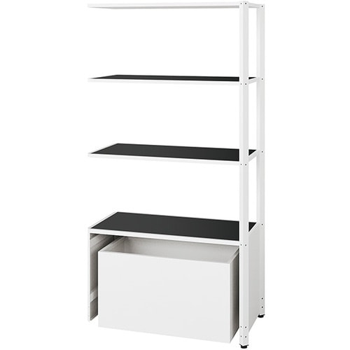 NAIKI シェルフラック(下段ボックス メレム MU型/天板:サテンブラック 本体:サテンホワイト/W925×H1813 MU0918RUSSWSB 1台 A08J-4647