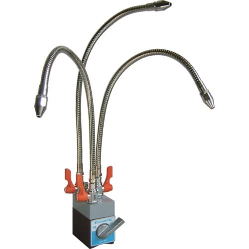 マグネット式なので取付け場所を選びません。金属性フレキシブルチューブを採用。無段階に曲げられ、安定した姿勢を保てます。切削加工時の熱い切屑がフレキ部に触れても損傷しません。 |