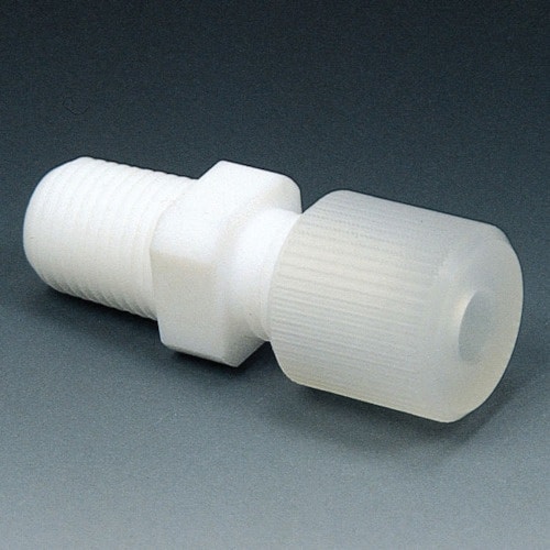 I型ジョイントです。(オネジ×チューブ接続ジョイントです。Wフェルール式のジョイントでは、耐圧が常温で0.8Mpaまでもちます。機能上液がスムーズに流れるように流量抵抗が少ない設計となっています。 |