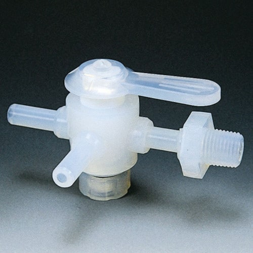 オールPFA製です。三方バルブ(枝管2ヶ所×オネジ接続)です。