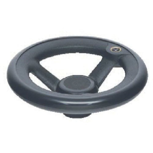 軽量で最もスタンダードな樹脂製ハンドル車です。軸穴・押しねじ穴2ヶ所(軸穴径:12mm)加工品です。 |