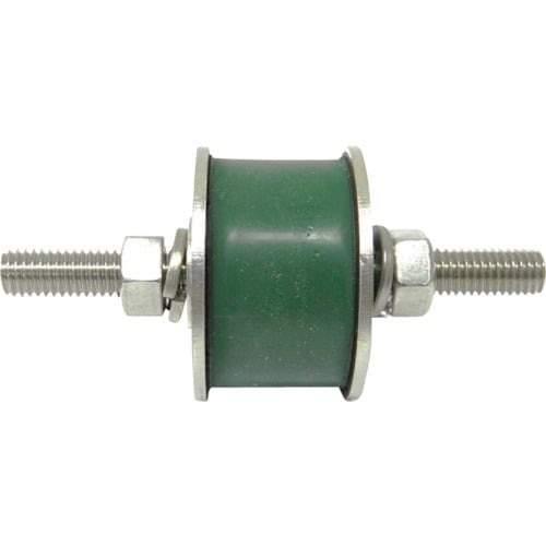 他の部材に比べて衝撃吸収性に優れているため、設備を重く剛性を高くしなくても振動を防止できます。低周波領域の防振が可能です。上下にボルトが装着されています。 |