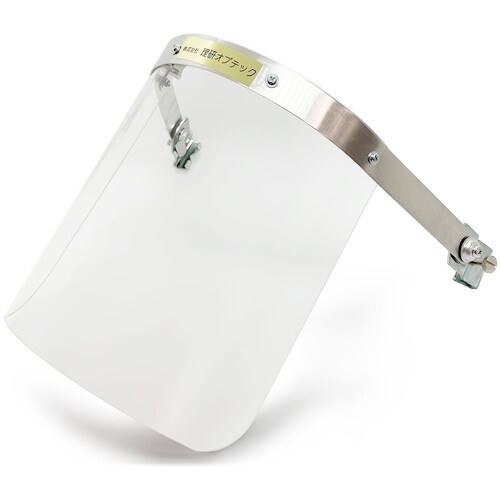 MP型ヘルメットに取付可能です。ねじ止め式でしっかり固定します。アクリルレンズなので透明度が高く、作業時に視界を邪魔しません。 |