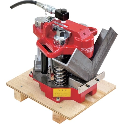 標準セットで、ステンレスアングル75×75×6mmの加工ができます。Vノッチ・ベンダが本体一体型のため、切替レバーの操作だけで金型交換なく5種類の加工ができ、操作性バツグンです。 |