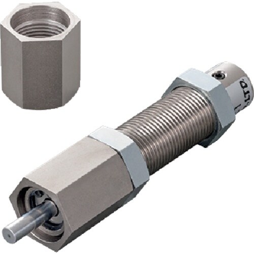 ※ショックアブソーバは一部型式を除き、外部ストッパ無しで作動させますと、ボトミングによる母機破損の可能性があります。外部ストッパを設けることができない場合には、必ずストッパーナットをご使用ください。ストロークエンド1mm手前で停止できるように調整し、ナットでしっかりと固定してください。