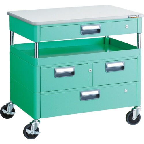 TRUSCO ツールワゴン フェニックスワゴン 抗菌 省音 750X500XH740 引出 天板付 ヤンググリーン PEW771VZWTYG 1台