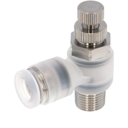 クリーン環境用PP樹脂ワンタッチ継手内蔵型速度制御弁(金属部SUS304)