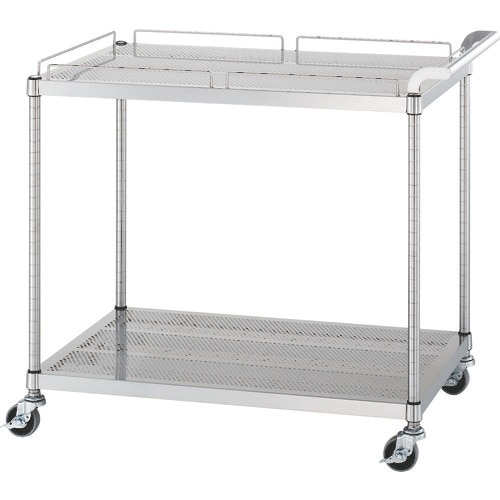 シンコー ステンレスワゴン(SUS430) 天地2段タイプ パンチング棚 ガード付1段ガード無1段 φ75ウレタン車 900×600×800 PM119060U75 1台