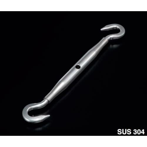 ステンレス製で枠がパイプ式のターンバックルです。ワイヤロープの張り具合を調整します。 |