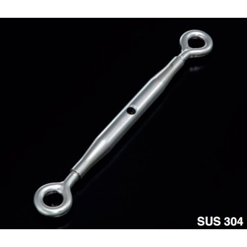 ステンレス製で枠がパイプ式のターンバックルです。ワイヤロープの張り具合を調整します。 |