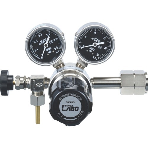 メタルダイヤフラムを採用し、高純度ガスの供給に最適です。分析、供給における高純度ガス供給(本体真鍮製、一段減圧式)用に。 |