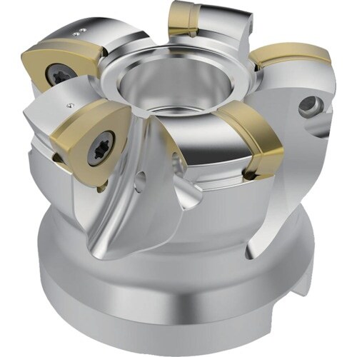 汎用用途のハイフィードカッタ、片面インサート3コーナー仕様です。長い突き出し部や不安定な環境に最適、機械の回転数や送り量が低い場合でも動作します。 |