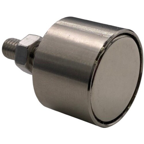 ねじ穴を利用し製品や冶具等の吸着にご使用いただけます。一般的な類似形状品と比較して、磁石のサイズが大きく吸着力が強いです。六角ナットが付いていますので高さ微調整やねじ穴でなくても使用可能です。 |