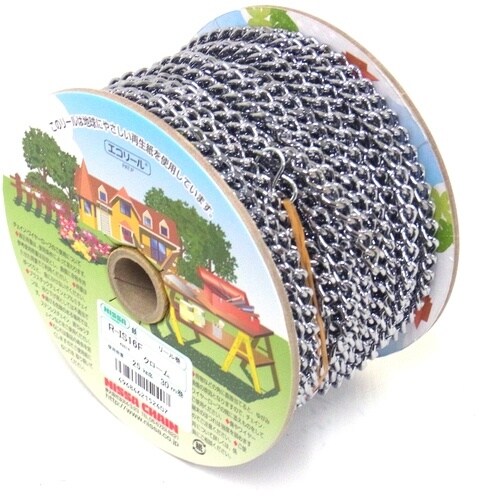リンクを90度ひねったチェーン、仕上がりの美しさと扱いやすいチェーンです。リールに巻いている製品のため、使用時に絡まりにくいです。表面を削っており装飾的です。