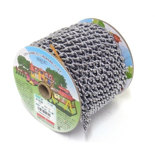 リンクを90度ひねったチェーン、仕上がりの美しさと扱いやすいチェーンです。リールに巻いている製品のため、使用時に絡まりにくいです。パーツとの併用で、転倒防止・連結部品として使用できます。 |