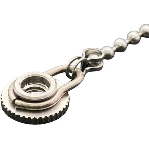 ステンレス製の並目ローレットナットにボールチェーンとリングを取り付けた製品です。ローレットナットとボールチェーンは360度独立に回転する構造です。ネジの固定、締結、保持等に。