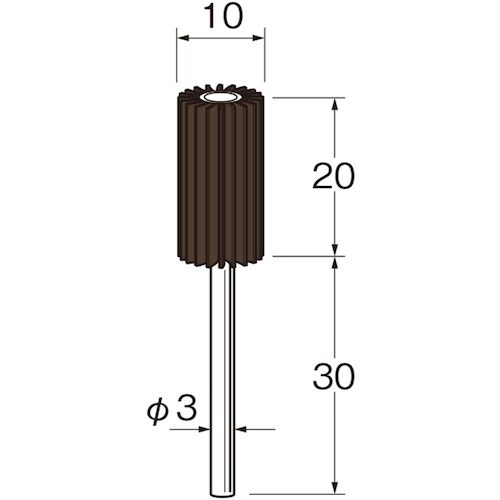 粒度(#):320 | 外径(mm):10 | 幅(mm):20 | 軸径(mm):3 | 軸長(mm):30 | 最高使用回転数(rpm):2000…