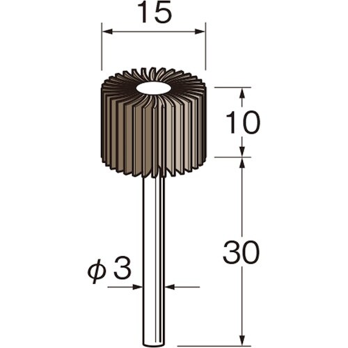 粒度(#):240 | 外径(mm):15 | 幅(mm):10 | 軸径(mm):3 | 軸長(mm):30 | 最高使用回転数(rpm):1000…