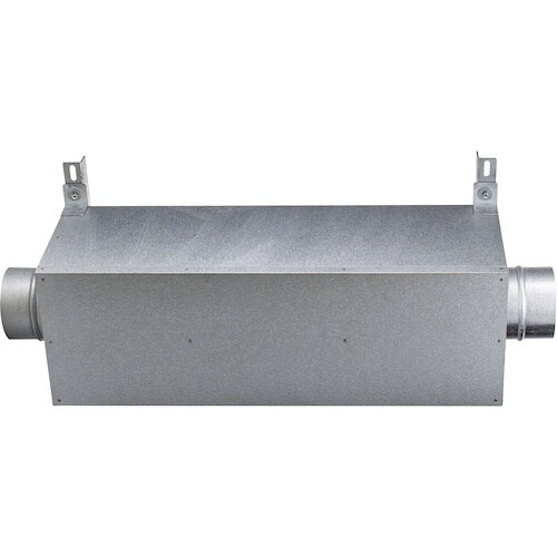 ファンから排出された排気音を軽減させるサイレンサーになります。ファン吐出側のダクトに直接接続することで、約 20dB の騒音低減します。