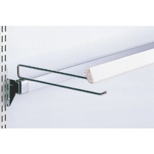 一直線で整った陳列ができるフック用のレールです。レール部分には値札やPOPを挟むことができます。フック付き商品の陳列に。
