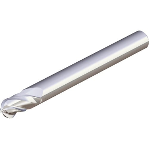 鋼・アルミ合金・非鉄金属の汎用加工に適しています。超微粒子超硬母材です。4枚刃、ボールエンドミル・シャープエッジ(ミディアムタイプ)です。汎用。