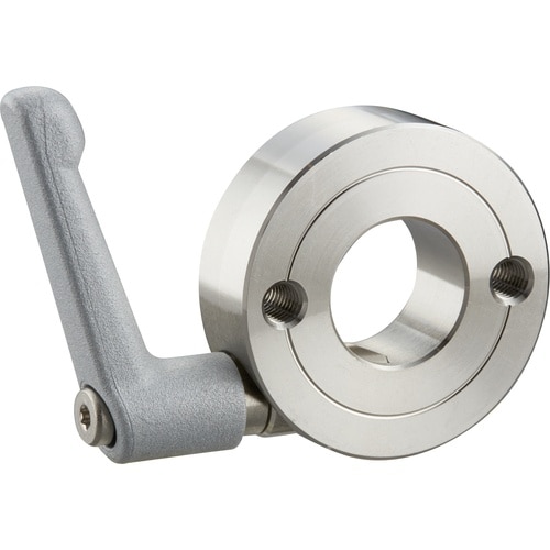特殊形状のクサビにより少ない力で締め付けが可能なクサビカラーです。クランプレバー付のため、工具なしで簡単に締め付けができます。2ネジ穴付のためブラケットの取り付けや、セットカラーの固定ができます。 |