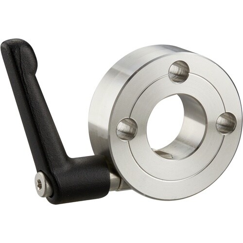 特殊形状のクサビにより少ない力で締め付けが可能なクサビカラーです。クランプレバー付のため、工具なしで簡単に締め付けができます。3穴付のためブラケットの取り付けや、セットカラーの固定ができます。 |