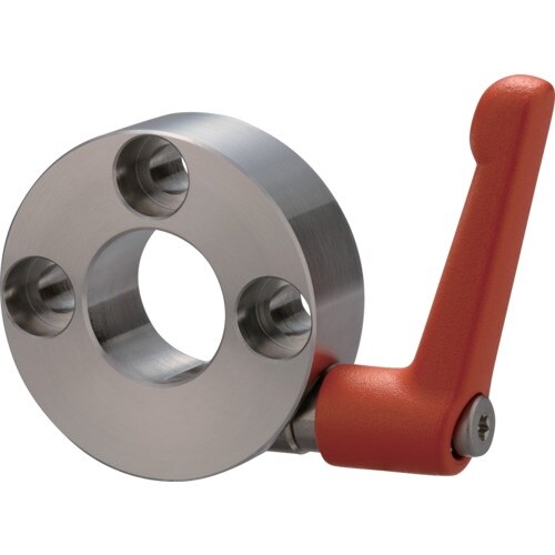 特殊形状のクサビにより少ない力で締め付けが可能なクサビカラーです。クランプレバー付のため、工具なしで簡単に締め付けができます。3ザグリ穴付のためブラケットの取り付けや、セットカラーの固定ができます。 |