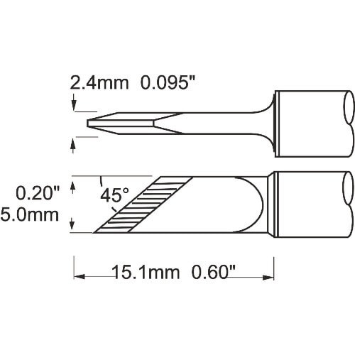 その他仕様:ヒーター温度471℃ K型 5.0mm x 15.1mm 45° | 単位:1本