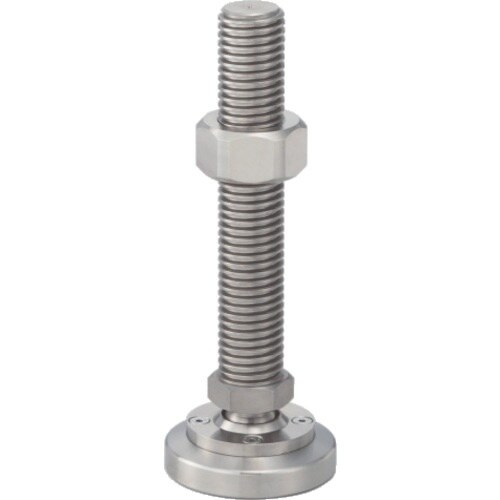 焼き付き(かじり)防止処理を施しています。約40°の首振り機構付のため、床面に傾斜がある場合も水平に保ちます。また、荷重が分散するため耐久性に優れます。ねじ部は台形ねじです。 |