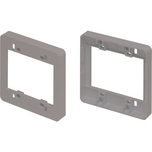 露出ボックス用カバーが取付けられます。コンセントプレートと壁面の間に取付けて使用します。1号、2号ニュー・エフモールに適合するノックアウト付きです。豊富なカラーを取揃えています。 |