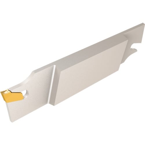1コーナー使いで世界初の自己拘束式突切工具です。チップを差し込むだけ、切削力でホルダーに固定されます。補修部品も不要で、チップの交換も容易です。突っ切り・溝入れ加工用。 |
